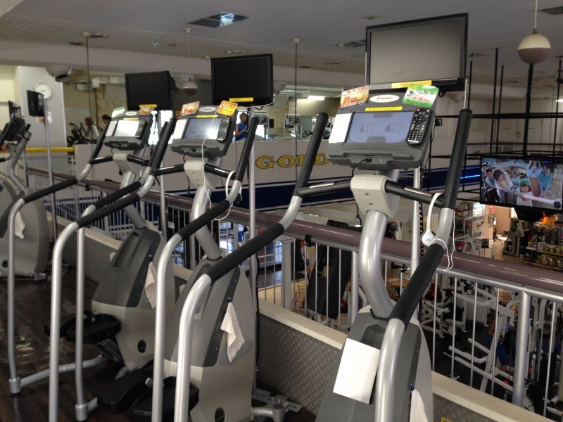 ゴールドジム横浜馬車道の有酸素運動のできるマシンの一部とジムの風景の図