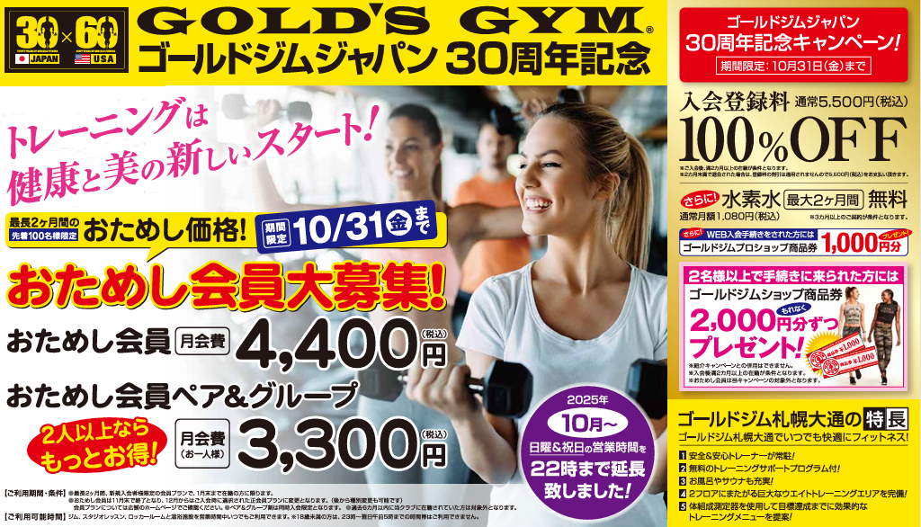 入会手続や、お電話のお問い合せは月曜〜土曜/10:00〜22:00 、日曜・祝日/10:00〜20:00の時間内に承ります。