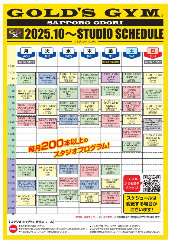 営業時間やお支払いについて、ジム利用の際のルールなどをご覧いただけます。
