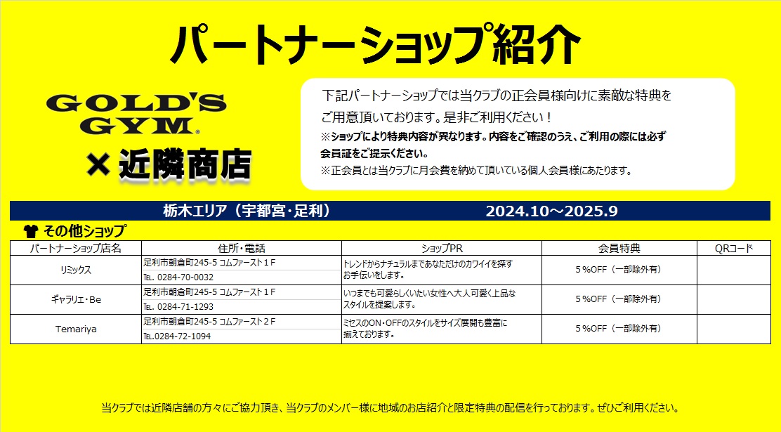 ※他店舗ゴールドジムのご利用は出来ません。